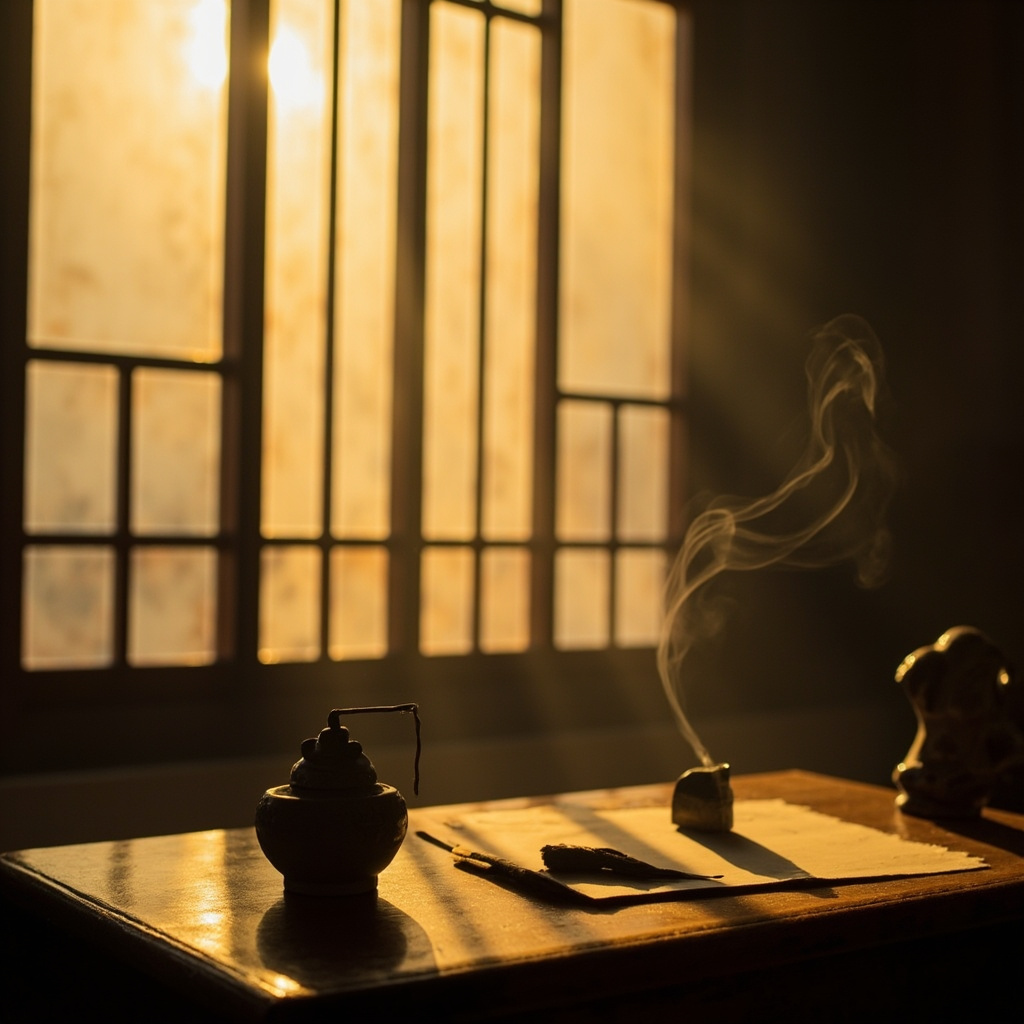 The room is still dark when you wake. You light a single thin stick of incense and set it in the small bronze burner on your desk. Within minutes, the fragrance begins to thread through the air — light, resinous, alive. By the time sunlight finally presses through the paper screen, your mind is already somewhere quieter.